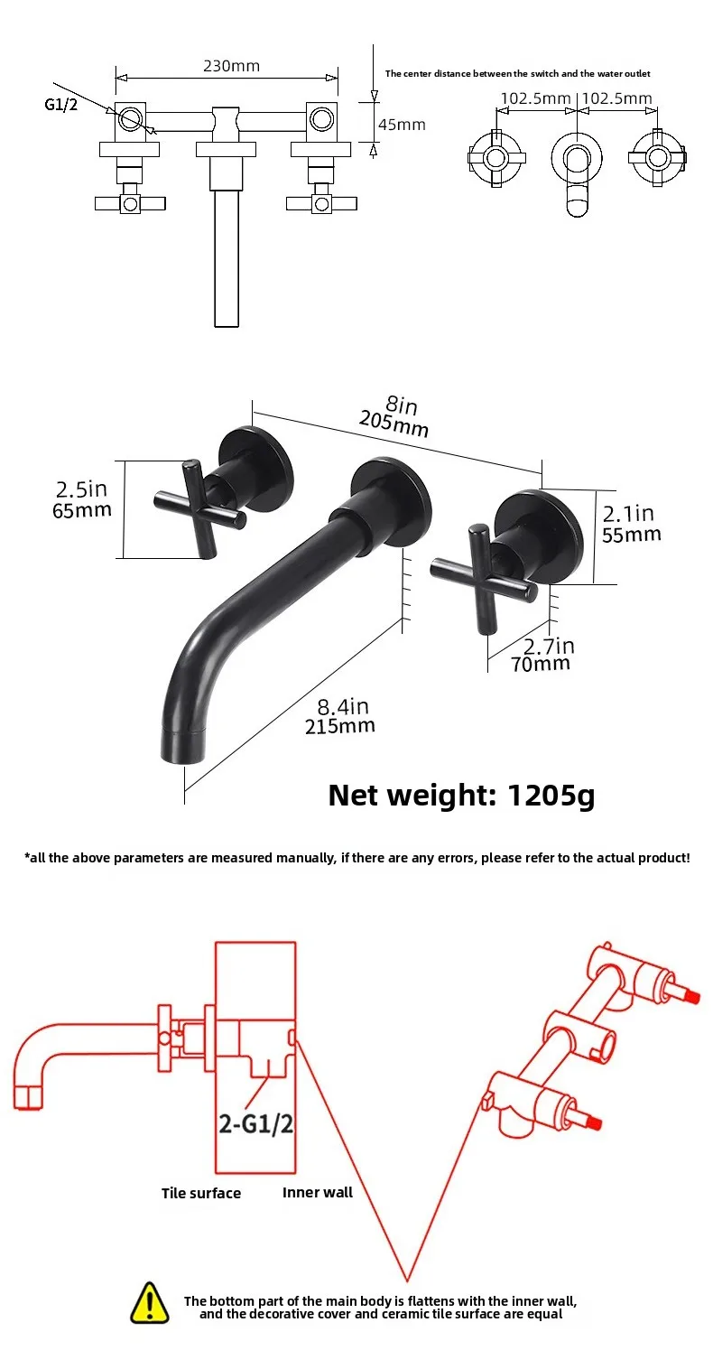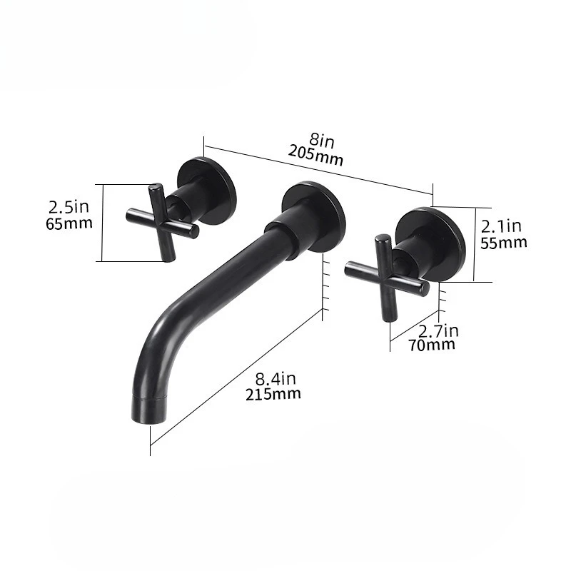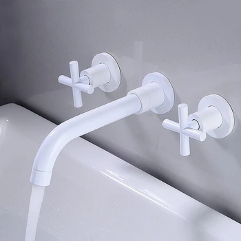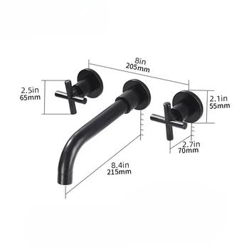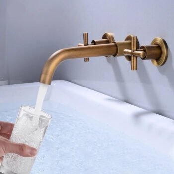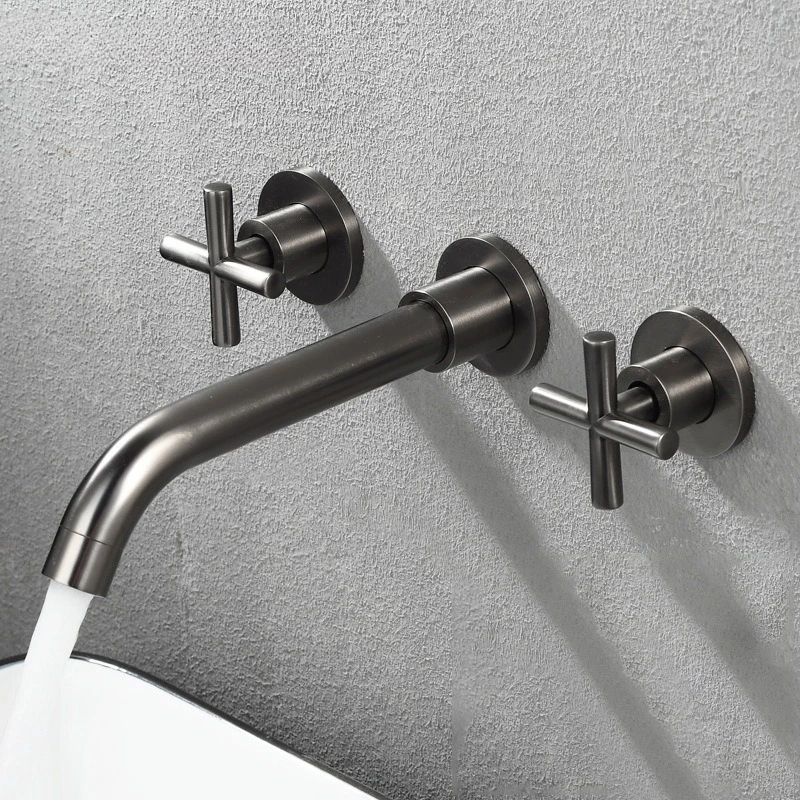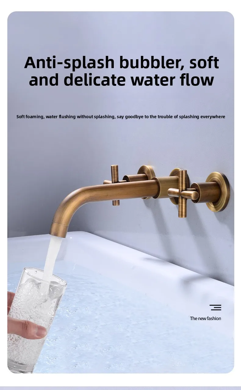 Wall Basin Faucet Set 3 Hole Gold/Black Gold Brass Double Cross Handle Wall Mounted Bathroom Basin Faucet Hot & Cold Tap